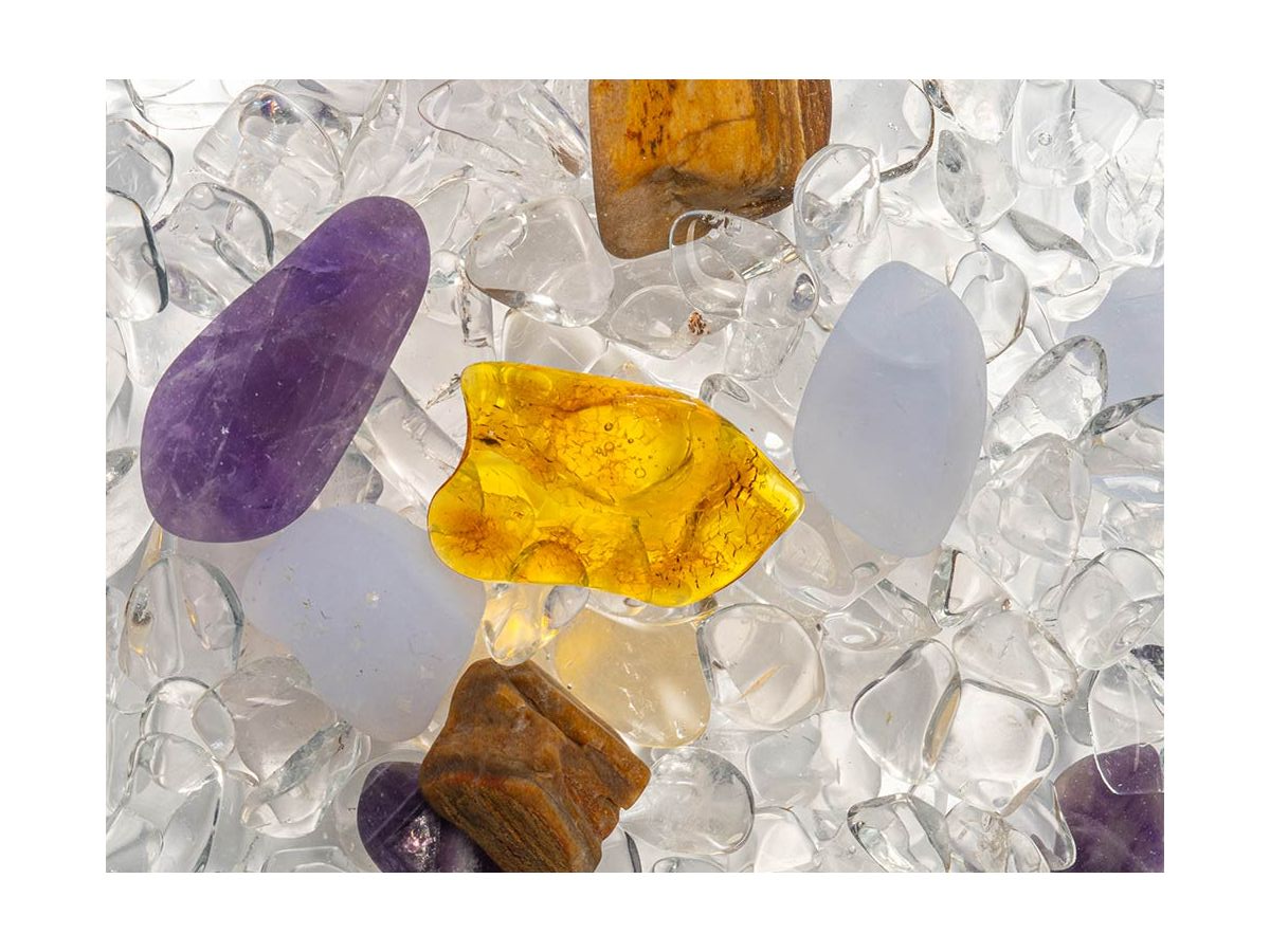 Ametyst – Chalcedon – Skamieniałe drewno – Bursztyn – Kryształ górski
