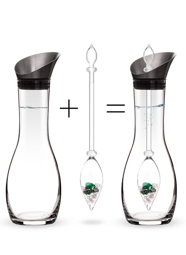 KOCHAJ TO, CO PIJESZ. Ten ekskluzywny zestaw różdżek i karafki z kamieni szlachetnych jest idealny do stylowego ożywienia wody w domu lub w biurze. Ciesz się świeżą i żywą wodą z kamieni szlachetnych, tak świeżą jak ze źródła. Sztyft wykonany ręcznie według starej tradycji ożywia wodę pitną i nadaje jej nieporównywalnie łagodny smak. Pręt z kamieni szlachetnych jest bezpiecznie zamocowany i trzymany przez pokrywę z epoki karafki bez ryzyka pęknięcia. Ciesz się blaskiem ręcznie zbieranych kamieni każdego dnia i stwórz swoją własną małą oazę dobrego samopoczucia.